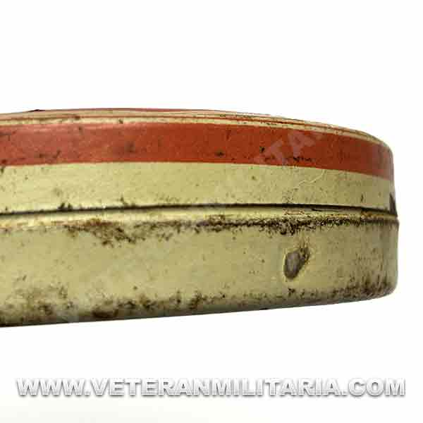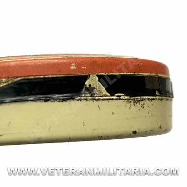 Lata de Sho-Ka-Kola con chocolate, fechada 1941, en la lata de encuentran dos piezas de chocolate, una de ellas no se puede extraer, en el latera rastros de precinto original.