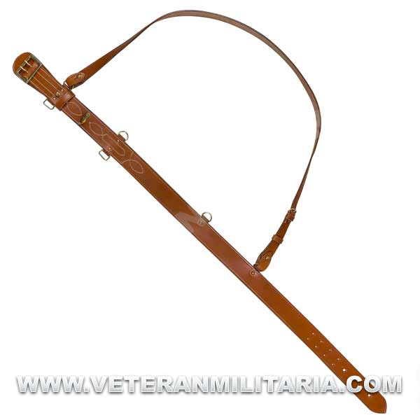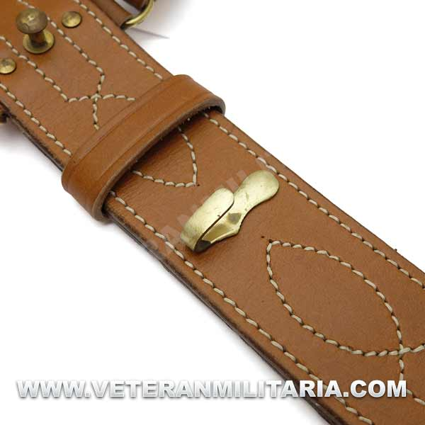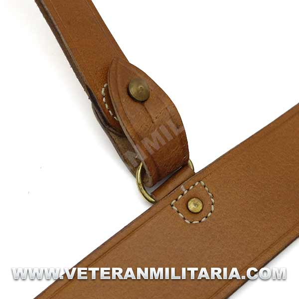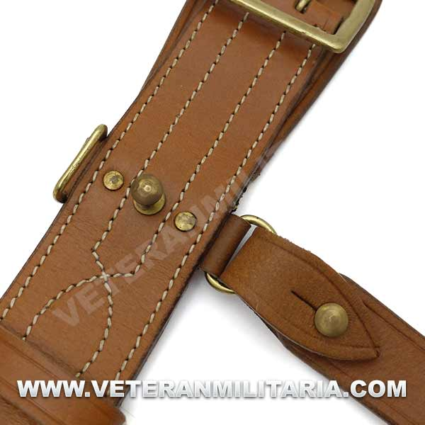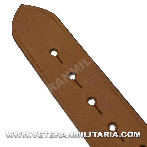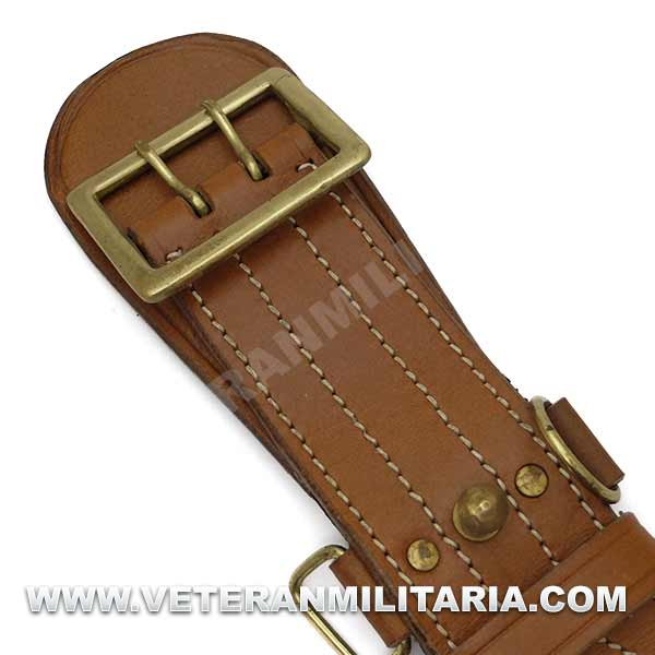 Reproducción de cinturón de oficial británico con correa auxiliar, fabricado en cuero marrón, herrajes de latón.