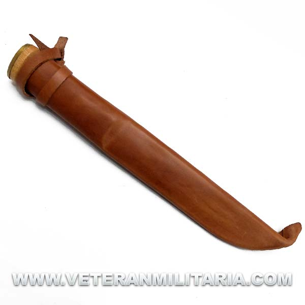 Cuchillo Finlandés Puukko, hoja de acero inoxidable, el mango de madera con herrajes de latón con funda de cuero.