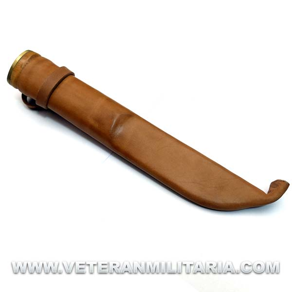 Cuchillo Finlandés Puukko, hoja de acero inoxidable, el mango de madera con herrajes de latón con funda de cuero.
