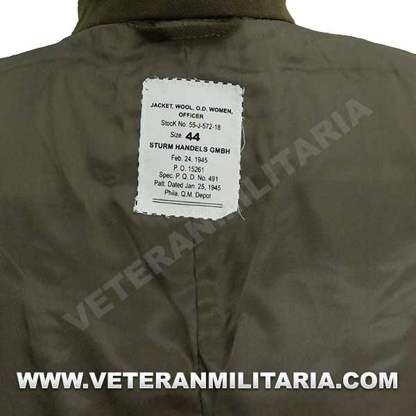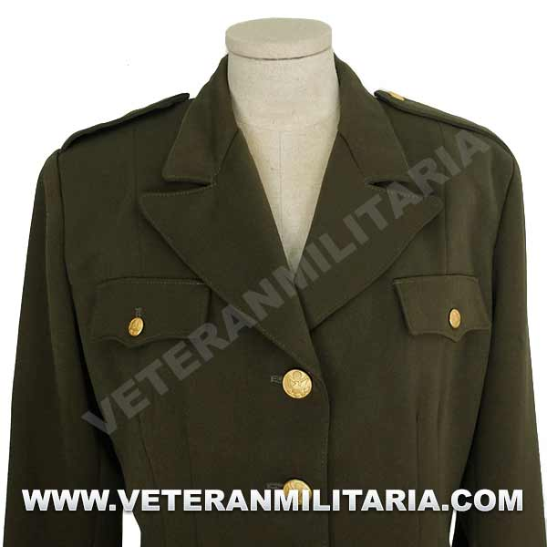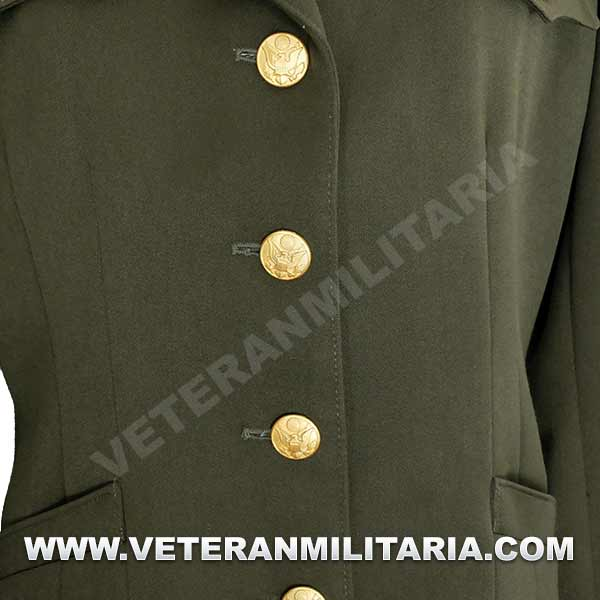Chaqueta de oficial del cuerpo auxiliar WAAC del ejercito americano, fabricada en tejido de gabardina de color OD, botones dorados.