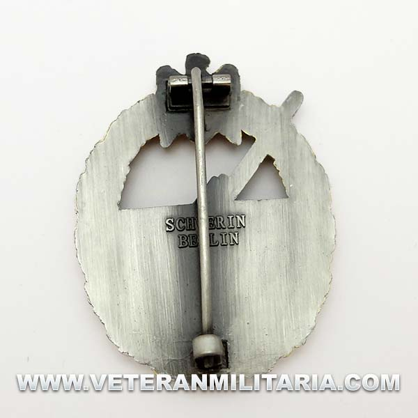 Reproducción de Distintivo de Combate de Artillería de Costa, fabricada en zinc en reverso marcajes Schwerin of Berlin