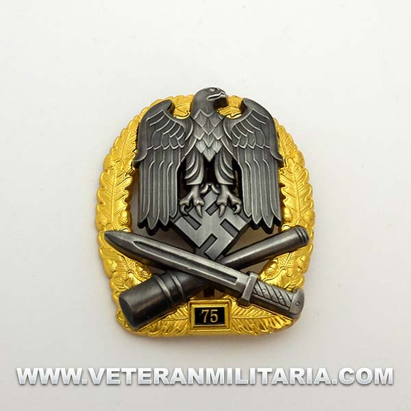El distintivo asalto general (Allgemeines Sturm-Abzeichen) fue instituida el 1 de enero de 1940 por el General Von Brauchitsch y diseñada por Wilhelm Ernst Peekhaus de Berlín, destinada para aquellos soldados que servían en unidades que no podían recibir medallas como las Placas de Asalto de Infantería o la de blindados.