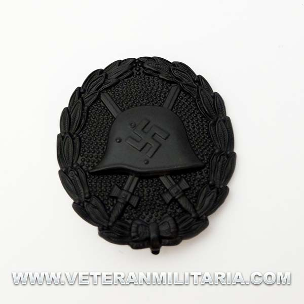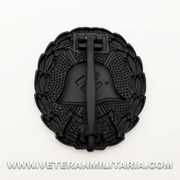 Reproducción del distintivo de herido en negro de la Legión Condor, fabricado en latón, en reverso cierre de aguja.