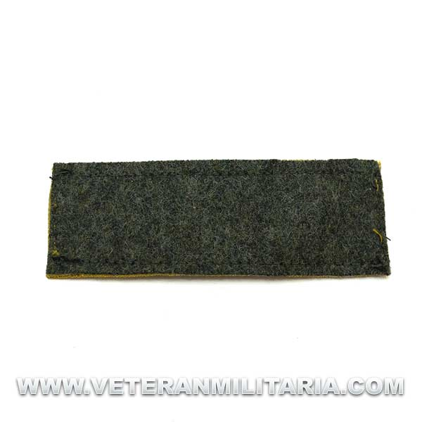 Reproducción de distintivo destrucción de carros, cinta dorada con banda negra en los bordes superior e inferior, en el centro una pequeña representación de un tanque.
