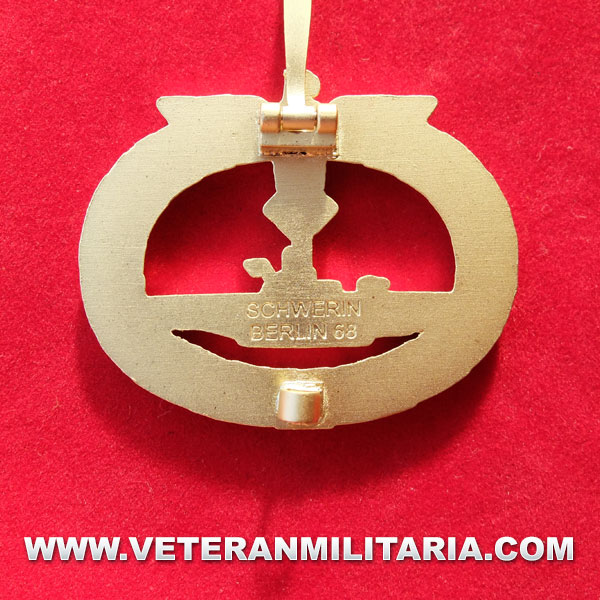 Esta recompensa, diseñada por Paul Casberg, tenía como motivo principal un submarino tipo VII situada sobre una guirnalda ovalada de hojas de laurel, encima de la cual se colocó un águila de alas desplegadas sujetando una esvástica. A diferencia de los demás distintivos de la marina, el eje mayor de la guirnalda era el horizontal, que medía 50 milímetros, mientras que el vertical, incluyendo el águila, llegaba a los 40. La terminación era siempre en oro, aunque la laca dorada de muchas de las piezas se perdió con el tiempo. En el reverso se situaba un enganche tipo alfiles que podía se plano o tipo aguja.