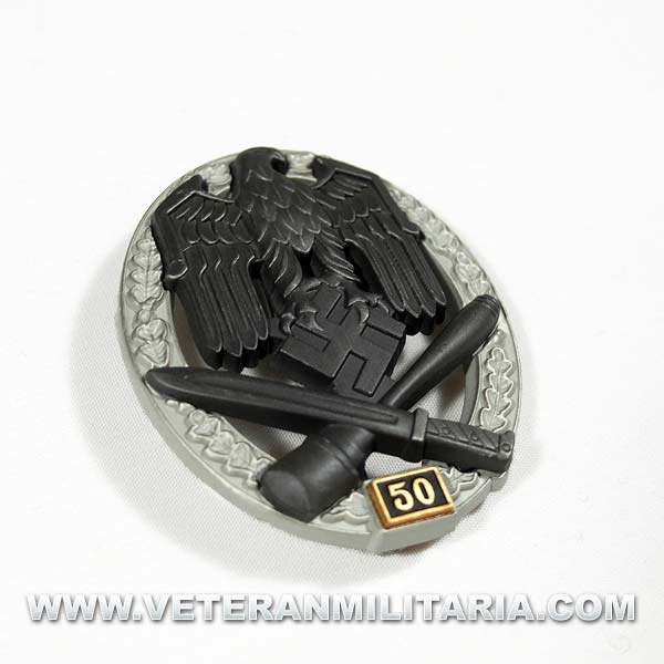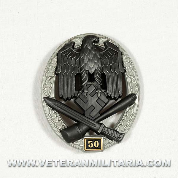 Distintivo de Asalto General Plata excelente reproducción en metal, en reverso marcajes.