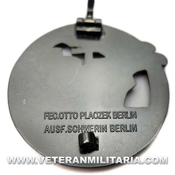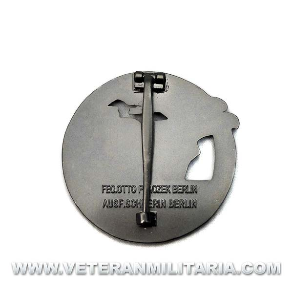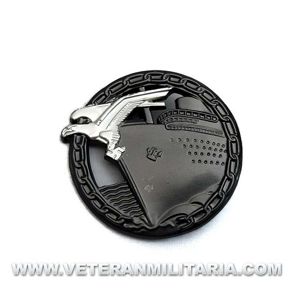Reproducción del distintivo de guerra de rompedores de bloqueo, en el anverso con una representación de un mercante visto desde babor, con un águila con la esvástica en vuelo en la parte delantera del buque y rodeado por una cadena en circulo de 49 milímetros, que es rota por el navío simbólicamente, todo el Distintivo estaba en color oscuro, a excepción del águila, que estaba en color plateado.