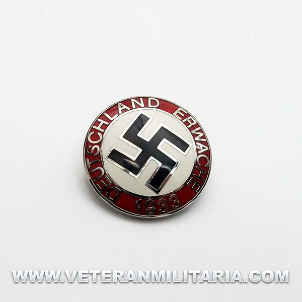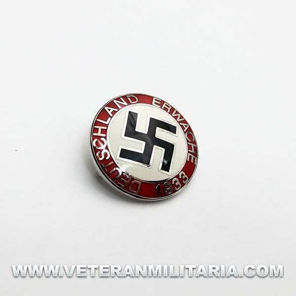 Reproducción del distintivo del partido nacional socialista (Deutschland Erwache Alemania Despierta). Centro esmaltado. Cierre horizontal de aguja, marcajes en el reverso RZM y número de serie.
