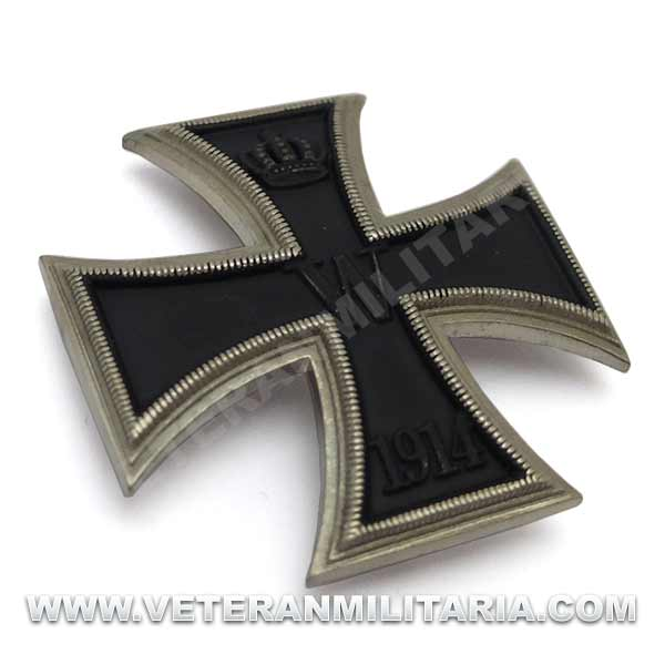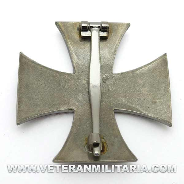 Reproducción de la Cruz de Hierro de 1ª Clase EK1 1914, fabricada en metal de una pieza, en reverso pasador con marcajes del fabricante