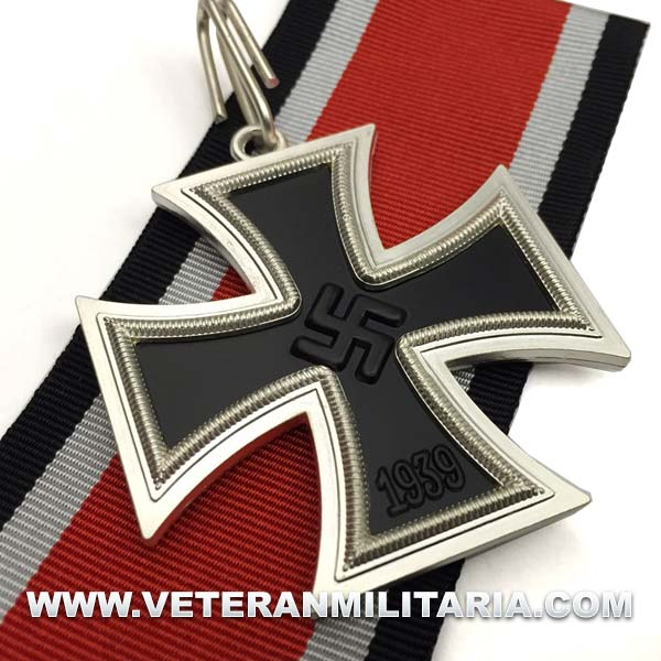 Cruz de Caballero de la Cruz de Hierro con hojas de roble. Excelente reproducción, fabricada en 3 piezas, marcajes, magnética, Incluye cinta y caja.