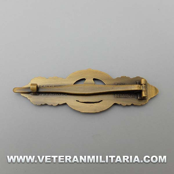 Reproducción de la insignia de combate de submarinos, fabricada en metal de color bronce, en reverso cierre de aguja y marcajes del fabricante.