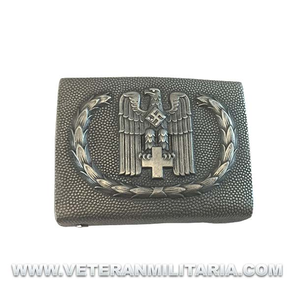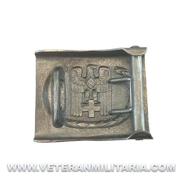 Reproducción exacta de la hebilla de DRK Deutsches Rotes Kreuz , fabricada en aluminio, granulada, con marcajes del fabricante.