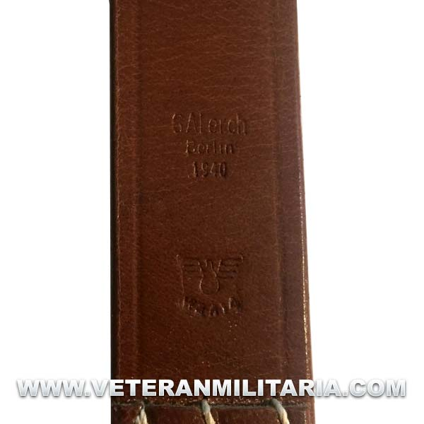 Reproducción de la correa para la MG 34/42, fabricada en cuero de color marrón, marcajes de fabricante.