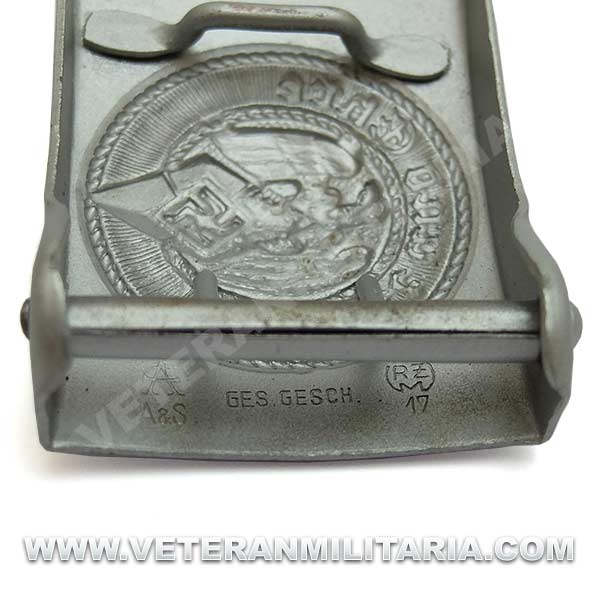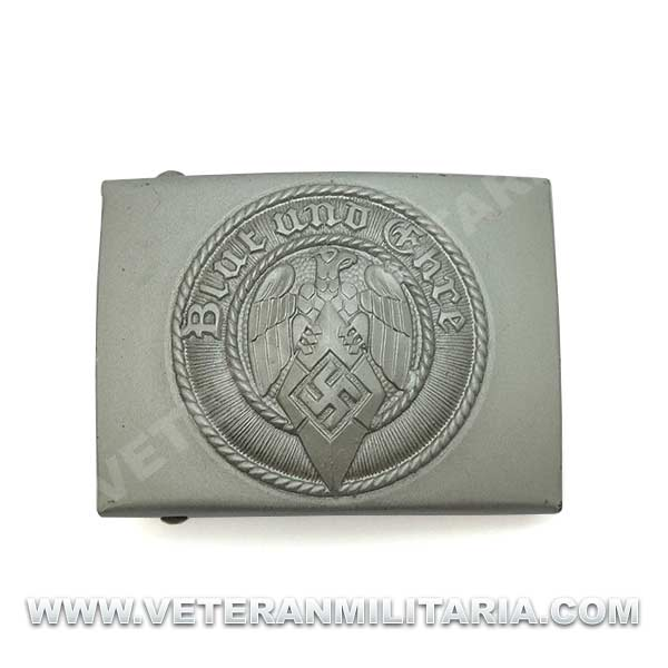 Reproducción de la hebilla de las HJ, fabricada en acero, con marcajes del fabricante.