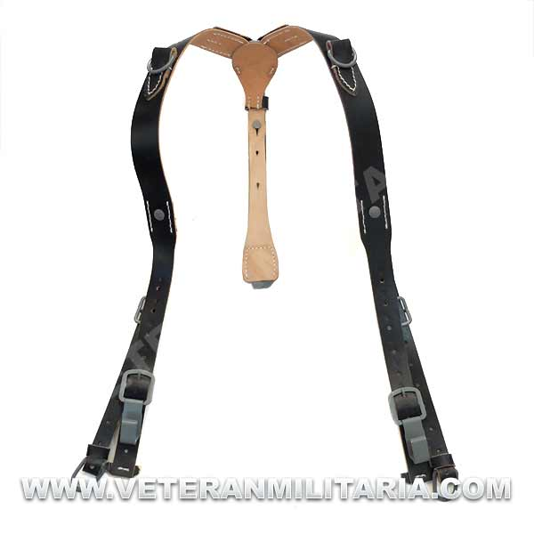 Reproducción de trinchas de combate, fabricadas en piel, todas las partes metálicas pintadas, marcajes de fabricante.