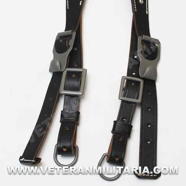 Reproducción de trinchas de combate alemanas, fabricadas en piel natural, cosidos con hilo, todas las partes metálicas pintadas de color gris, marcajes de fabricante.