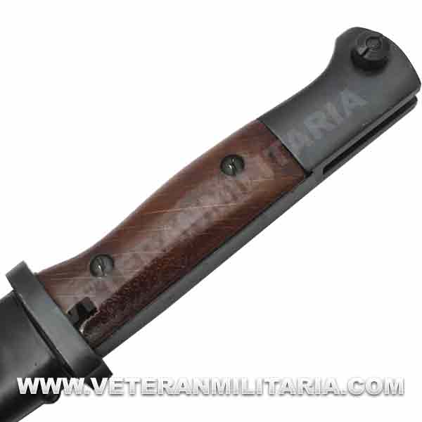 Reproducción de la bayoneta alemana de la Segunda Guerra Mundial, para el Máuser K98. Fabricada en metal, idéntica a la original, con marcajes de fabricante.