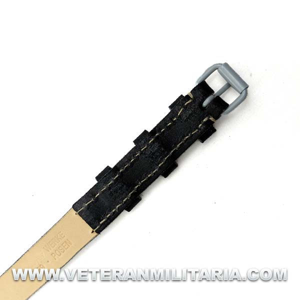 Reproducción de Correa Auxiliar de A-Frame, fabricada en piel natural, cosida con hilo sin teñir, de color negro. Con tras presillas.