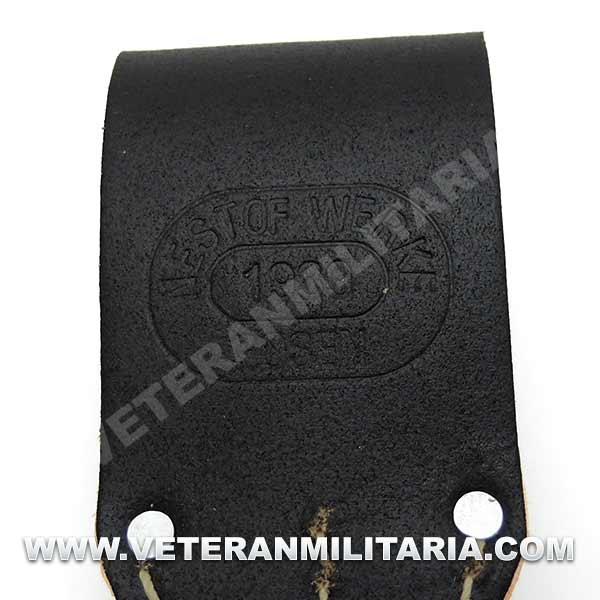 Tahali para Bayoneta Kar98 con corra, fabricada en piel, color negro. Marcajes del fabricante