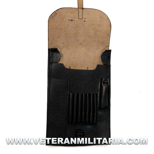 Reproducción de portaplanos - portamapas alemán (Meldekartentasche M35) modelo 1935, fabricado en cuero negro granulado.