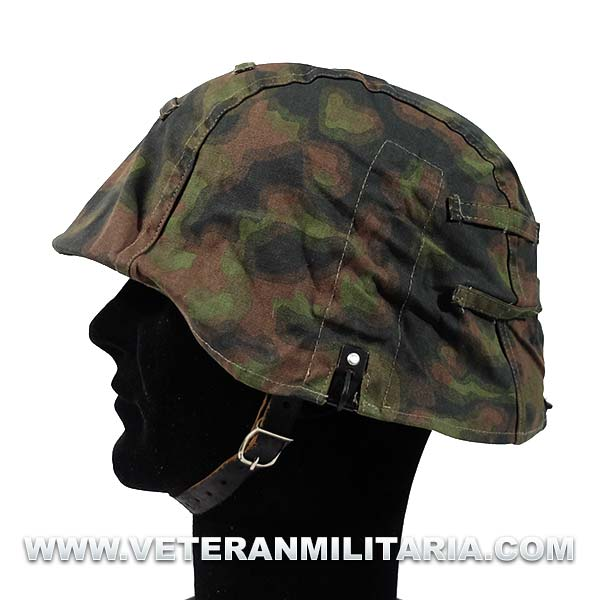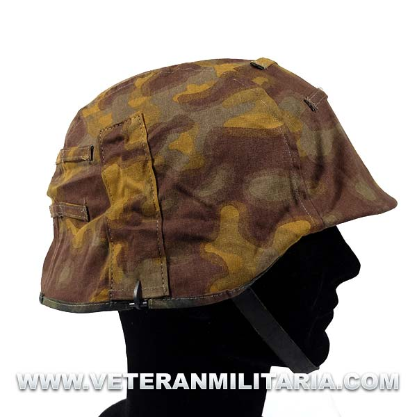 Excelente reproducción de funda para casco, camuflaje tipo Rauchtarn, para cascos M35, M40, M42. Fabricada en algodón, el camuflaje es de doble cara, versión de tres ganchos metálicos. Utilizado por las tropas Waffen SS durante la Segunda Guerra Mundial.