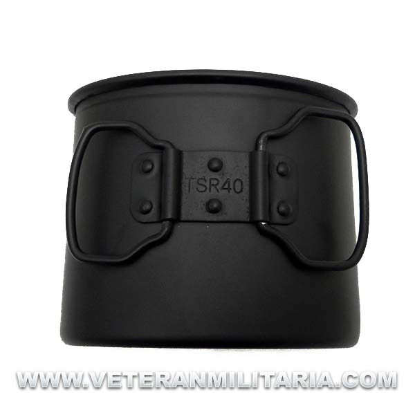 Reproducción del vaso para la cantimplora modelo 1931, fabricado en aluminio de color negro satinado, marcajes del fabricante.