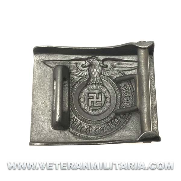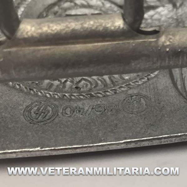 Reproducción exacta de la hebilla de las Waffen SS, fabricada en aluminio, con marcajes del fabricante RZM