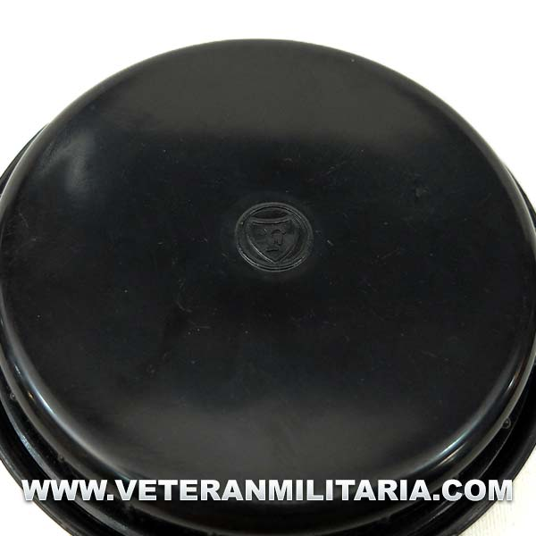 Reproducción de mantequera alemana, fabricada en plástico de color negro.