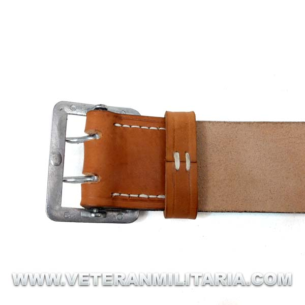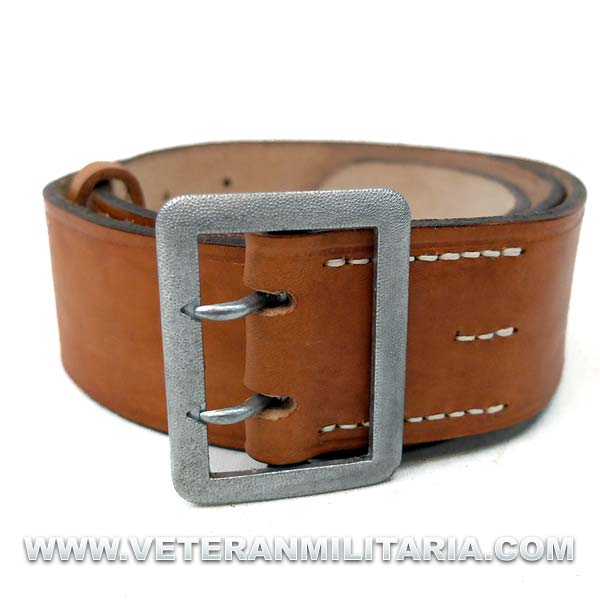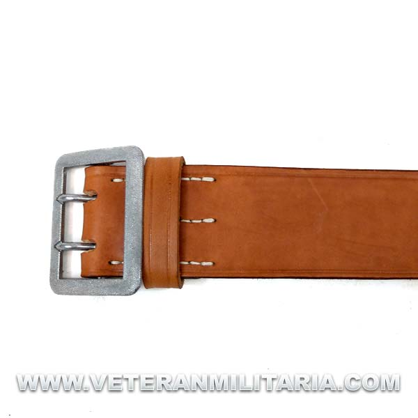 Reproducción de cinturón para oficiales de la Wehrmacht, Waffen SS y Luftwaffe, fabricado en cuero marrón con hebilla plateada y granulada.