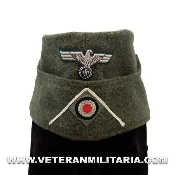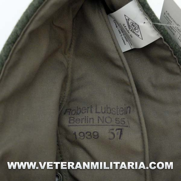 Reproducción de la gorra M34 Wehrmacht, fabricada en lana de color feldgrau, en el interior marcajes del fabricante.