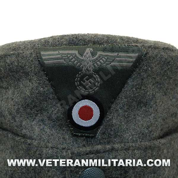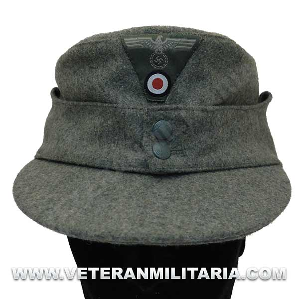 Reproducción de la gorra M43 para tropa y suboficiales de la Wehrmacht, fabricada en lana de en color Feldgrau, con 2 botones, trapezoide para tropa y suboficiales Wehrmacht, forro de algodón