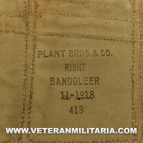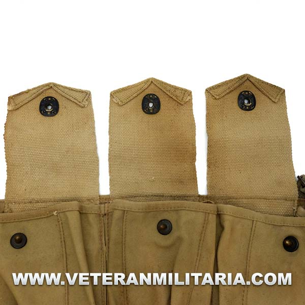 Bandolera BAR M1918, fabricada en lona gruesa de color khaki para seis cargadores, correa ajustable, marcajes del fabricante: