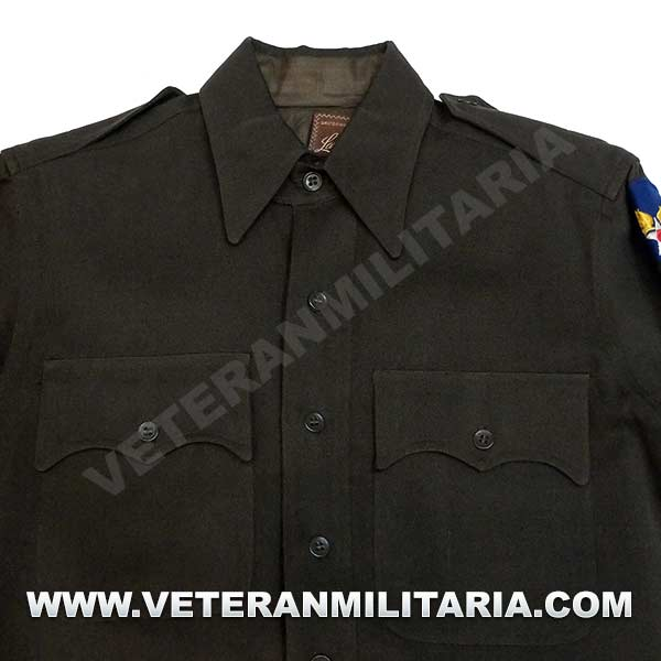 Camisa de oficial USAAF, fabricada en tela de gabardina, de color chocolate Olive drab 51 dark shade, parche de la USAAF (original).