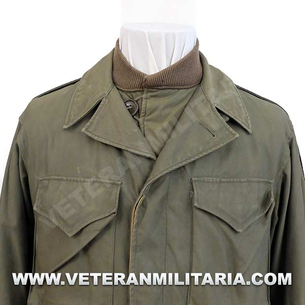 Chaqueta modelo 1943 con forro de invierno, chaqueta de la 2 división de infantería, rango cabo, forro de invierno con seis botones, color OD.