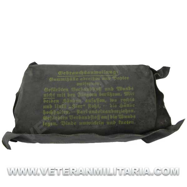 Paquete de vendas alemanas, fechada 1940, el paquete esta cubierto de tela de goma resistente al agua.