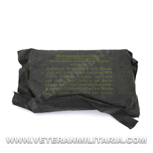 Paquete de vendas alemanas, fechada 1940, el paquete esta cubierto de tela de goma resistente al agua.