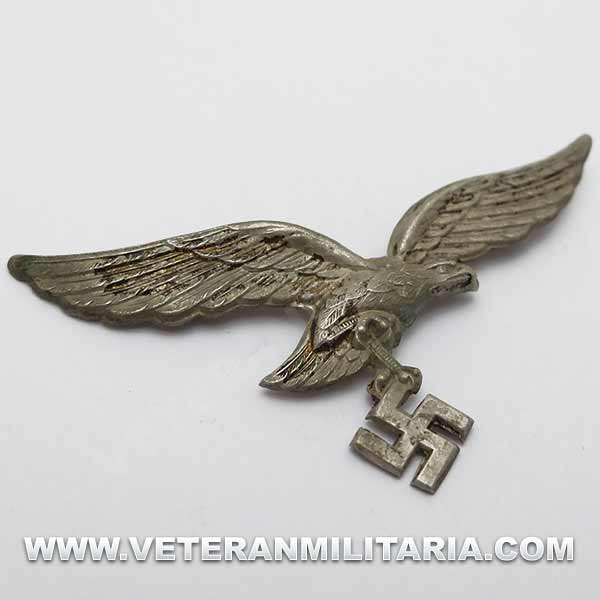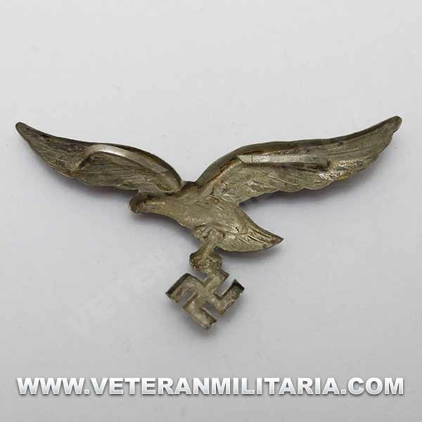 Águila para Gorra de Plato Luftwaffe Original (Schirmmützen Adler) fabricada de zinc, patillas en la parte posterior.