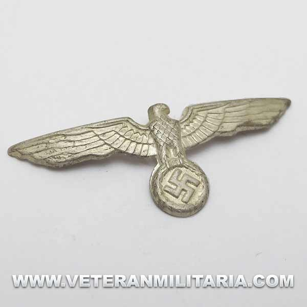 Águila para Gorra de Plato Wehrmacht Original (Schirmmützen Adler) fabricada de aluminio estampado en color plata, patillas en la parte posterior.