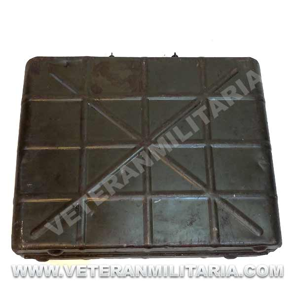 Caja o maleta alemana para transportar granadas M24 (Stielhandgranate 24), fabricada en chapa de acero, conserva mucha pintura original, en el lado izquierdo troquelado marcajes de fabricante y fecha 1937. En el interior marcajes 15 S y RR.