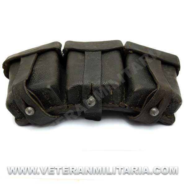Port cargador para Mauser Kar98, fabricado en cuero negro granulado con tres compartimentos, en la parte trasera marcajes Otto Gehrckens Pinneberg 1942.