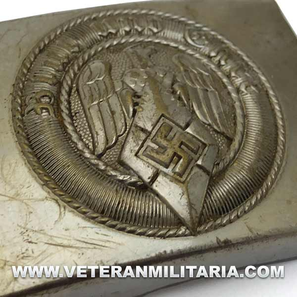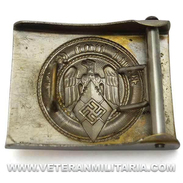 Hebilla de cinturón de HJ, fabricada en acero niquelado, en el centro Aquila con la escritura "Blut und Ehre" (Sangre y Honor).