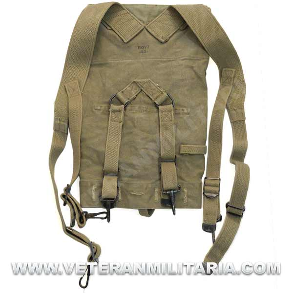 Haversack modelo 1928 original con la bolsa Mess Kit, marcajes en parte delantera U.S, marcajes del fabricante BOYT 42.