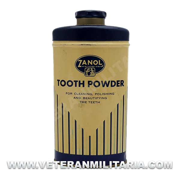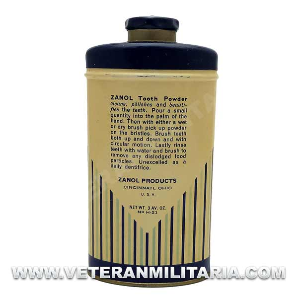 Pasta de dientes en polvo Zanol americana, este tipo de pasta de dientes fueron utilizados por los soldados en la segunda guerra mundial.