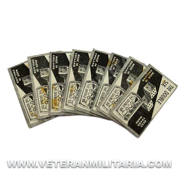 Hojas de afeitar británicas de la marca "Double Six" de uso militar. Originalmente estas hojas estaban magnetizadas por lo que la flecha apuntaría hacia el norte cuando se metiera en el agua. Esto es así cuando la hoja flotaba en el agua, se podía usar como brújula de escape.
