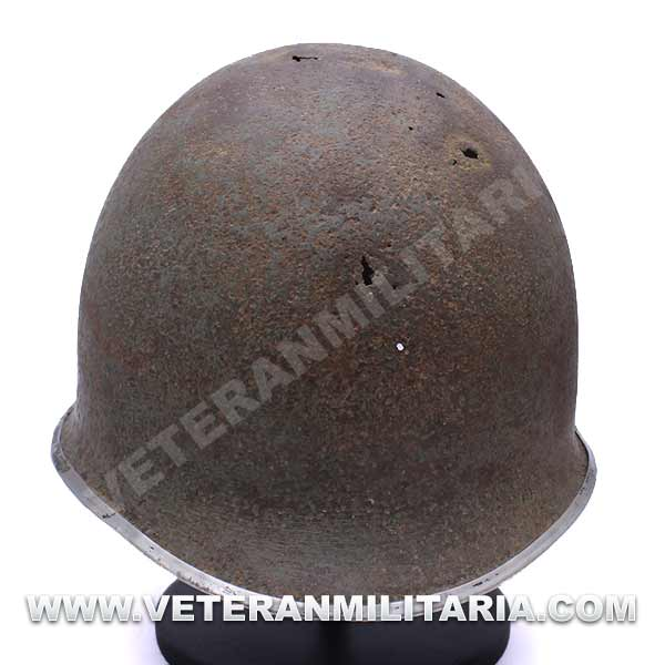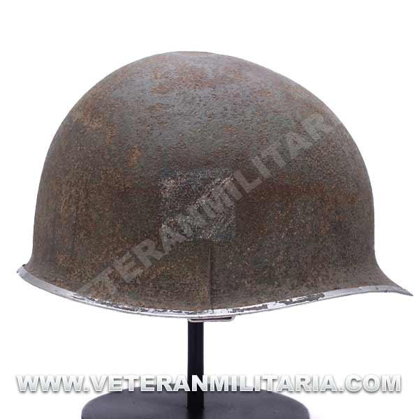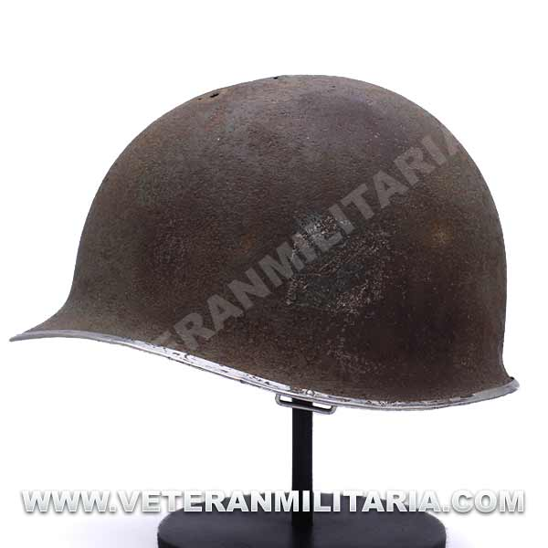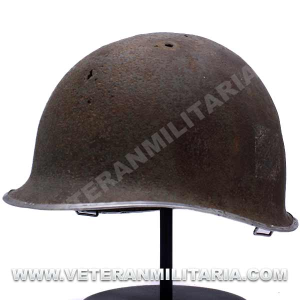 Casco M1 de 3.ª de infantería, casco de excavación, restos visibles de insignias de 3.ª de infantería y pintura, corte delantero, trabillas para barboquejo fijas.