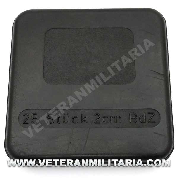 Caja de baquelita para transporte de 25 espoletas de 2cm Flak/MG151/20, fechada en 1943. Caja vacía
