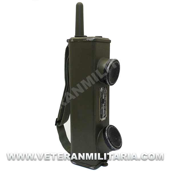 Radio BC-611-C "Handie-Talkie", transmisor y receptor genuino de la Segunda Guerra Mundial, fechado en 1945, pintura original, la puerta de la batería se abre y los contactos parecen estar en buenas condiciones. También conserva su antena extensible completa con tapa extraíble, la placa de datos original en el costado.
