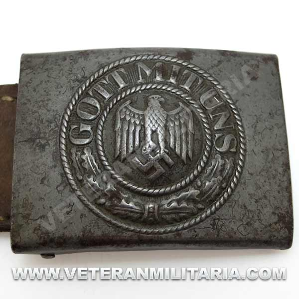 Hebilla de la Wehrmacht, fabricada en acero, en reverso conserva mucha pintura original, la hebilla y el cuero sin marcajes.