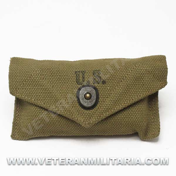 Bolsa de primeros auxilios con kit de primeros auxilios, marcajes de fabricante MID-WEST DUCK & CANVAS CO. 1942